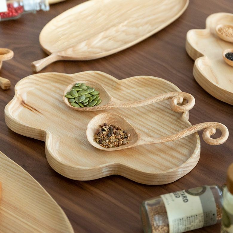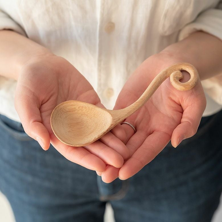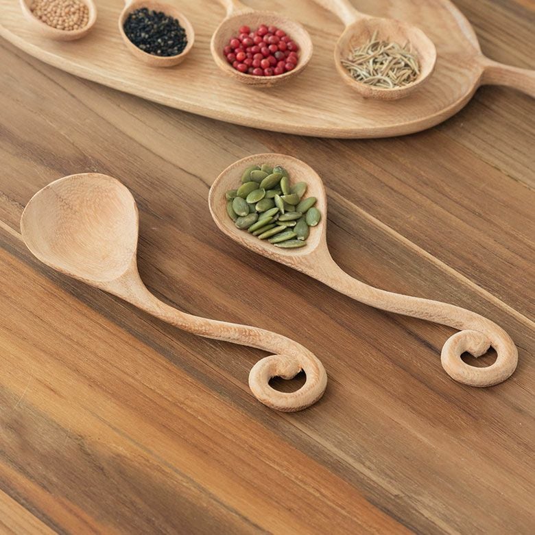 ねこのしっぽのような持ち手がキュートな、天然木(ドウシェ)のカトラリー。