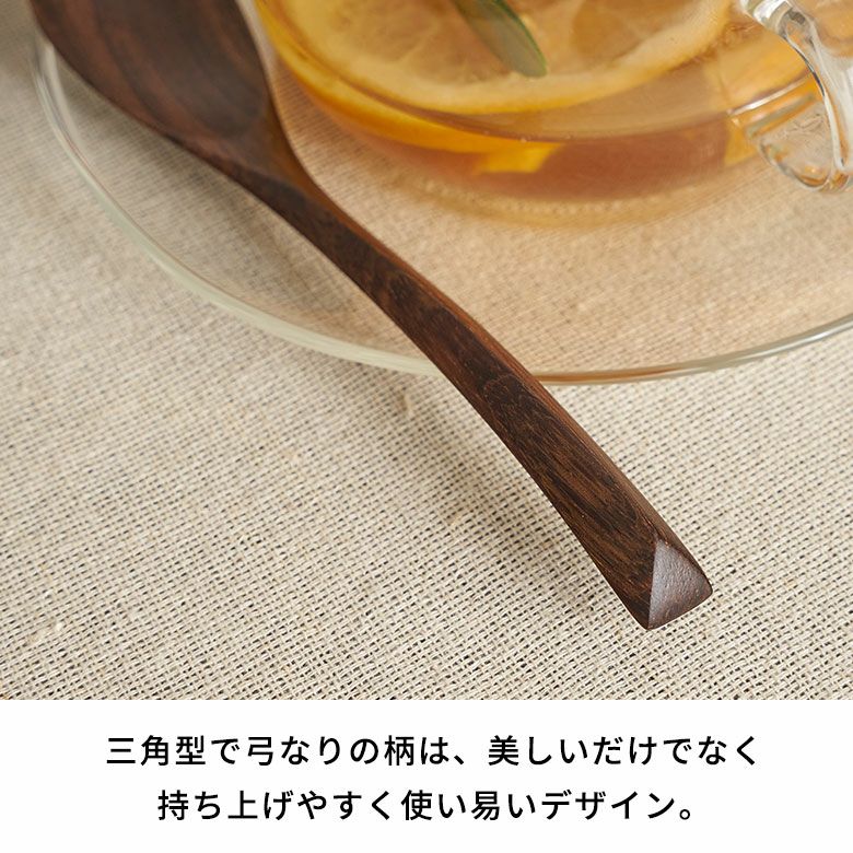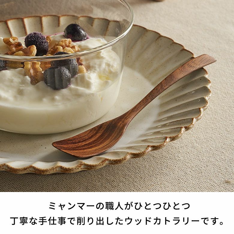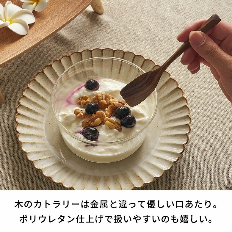 木のカトラリーは金属と違って熱くなりすぎることもなく、優しい口あたり。