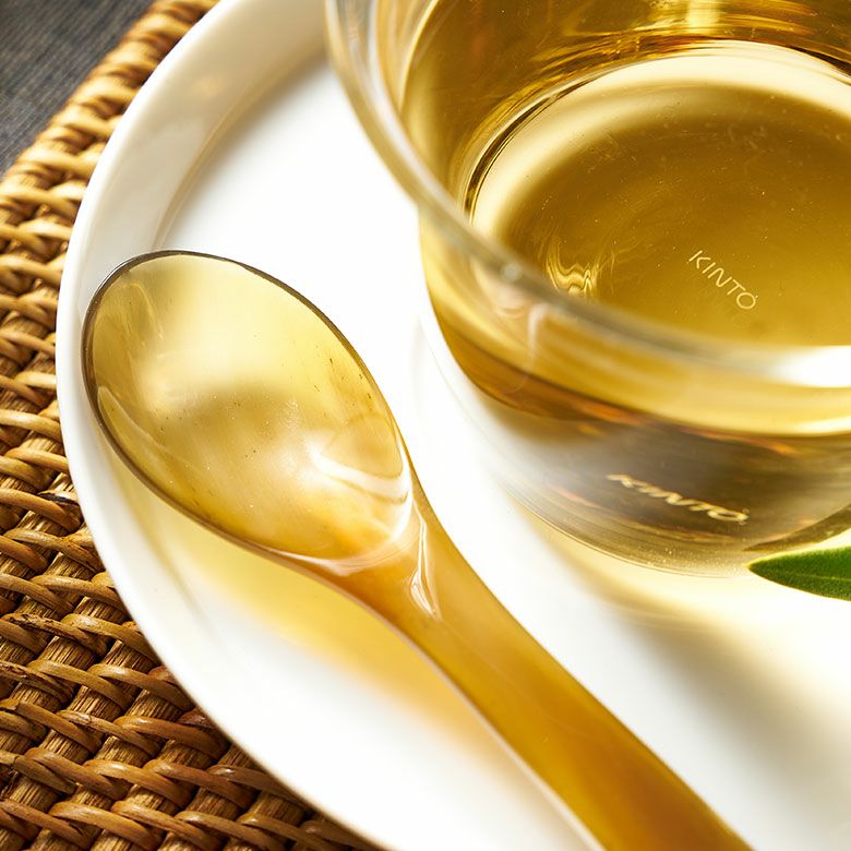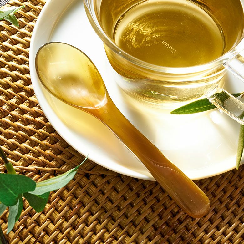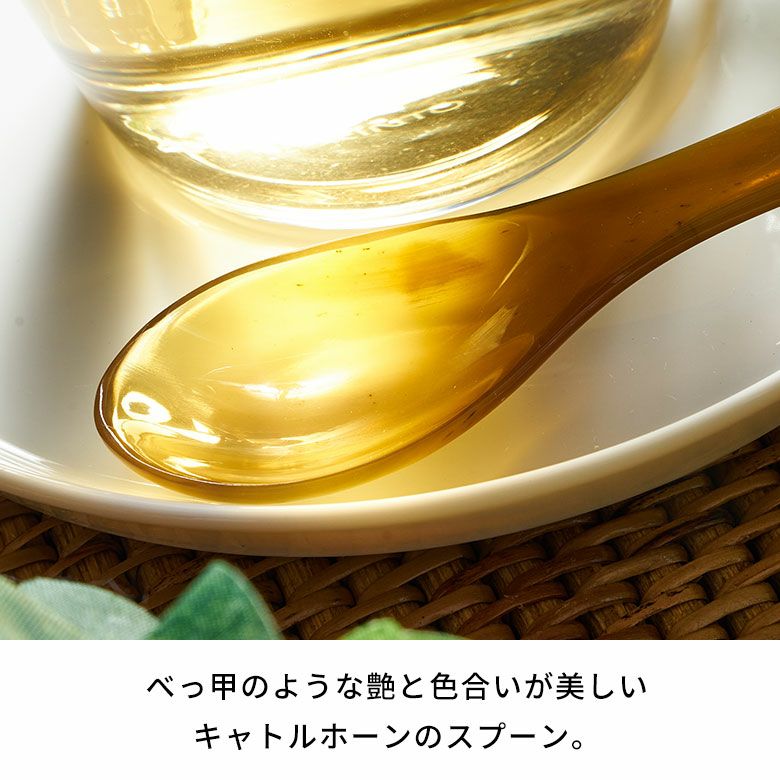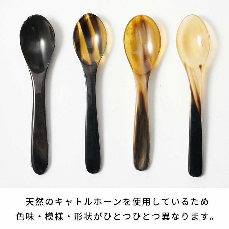 べっ甲のような艶と色合いが美しい、キャトルホーン(牛の角)で作られたスプーン。