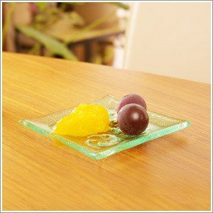 | ハンドメイドのガラスプレートは少し緑がかった透き通った綺麗で透き通った色合いです。 プレートのコーナーにプルメリアの花が描かれたシンプルで可愛いデザイン。こちらの プレートは食品衛生検査委済みですので、プレートの上に食べ物をおいてお使いいただけます。 朝食やランチライムにガラスのプレートを使うといつもの食卓が爽やかな印象に変わります♪さらにこれ一つで お部屋の雰囲気がよりアジアンなテイストに変わりますよ♪ | ||||
