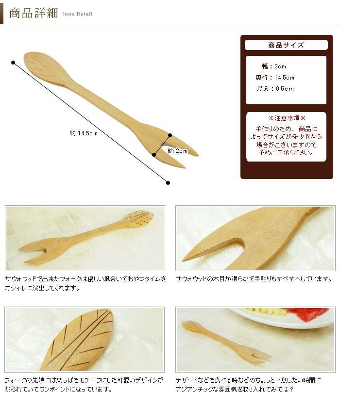 木の色味がそれぞれ違うのでフォークの色味も個体差が