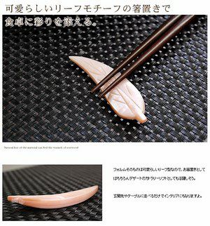 上品な光沢感のあるシェルで作られた葉をモチーフにした箸置き。