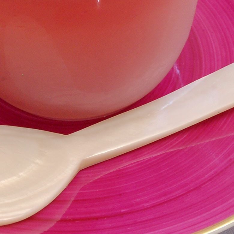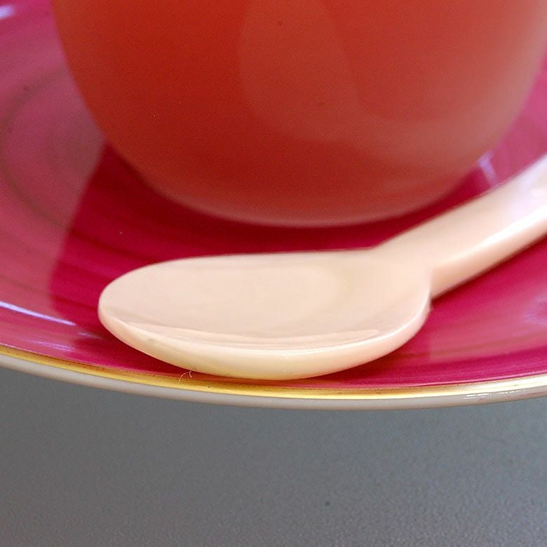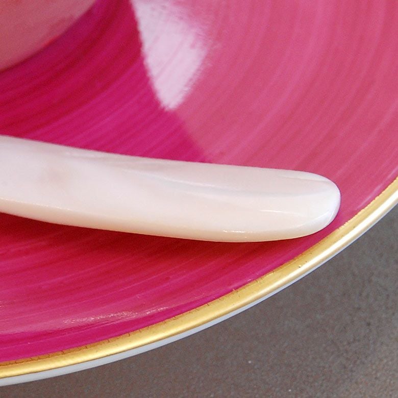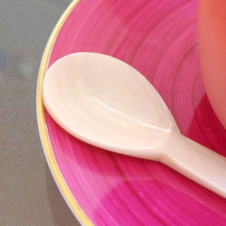 光が当たるとキラキラと輝くパールシェルで出来たミニスプーン。