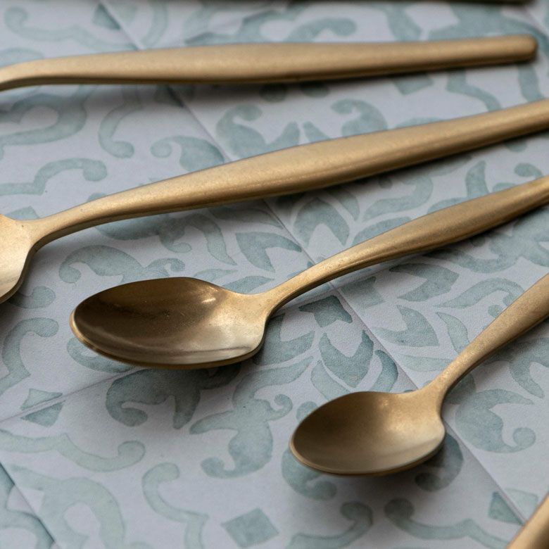 ミニサイズ デザート カフェ レストラン 紅茶 アイスクリーム ギフト 【メール便対応】ティースプーン スプーン マット ゴールド つや消し ヴェリーノ [66986]【 Velino 結婚祝い 食洗機対応 スプーン 小さめ カトラリー 金 ステンレス シリーズ キッチン プレゼント ゴールドカトラリー テーブルセッティング おしゃれ 北欧 リゾート 】