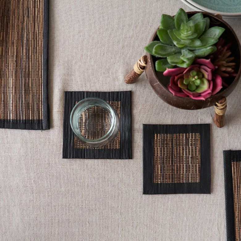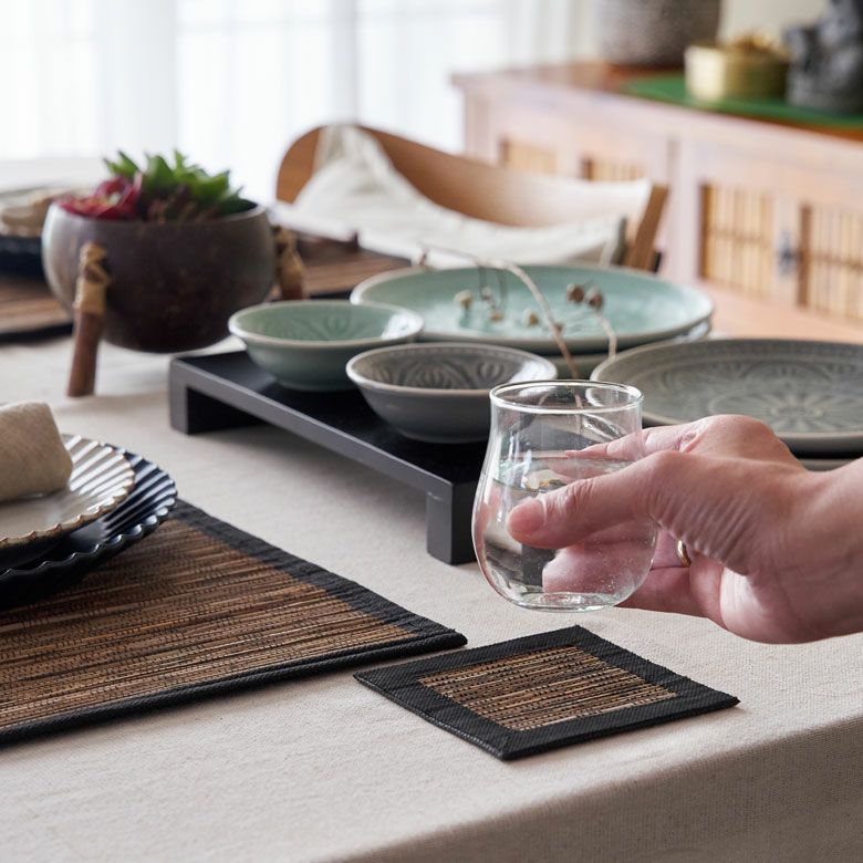▲リゾートスタイルのダイニングテーブルを演出する、アジアンコースター