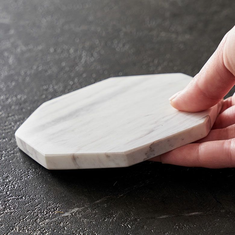 マーブル模様の洗練された高級感と上品で美しい質感が魅力のコースター。素材には、歴史的建造物や彫刻にも用いられる高品質な大理石「ホワイトカララ」を使用。職人が手作業で丁寧に磨き上げた滑らかな表面は、触れるたびに上質さを感じさせます。