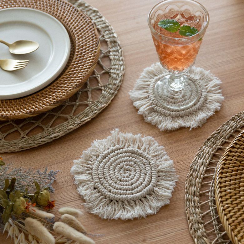 ハンドメイドならではの温かみを感じるマクラメコースター。