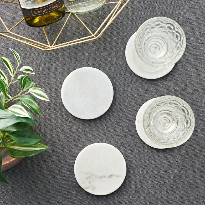 テーブルをラグジュアリーな雰囲気に演出してくれる、大理石のコースター。
