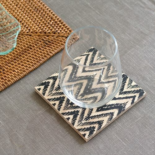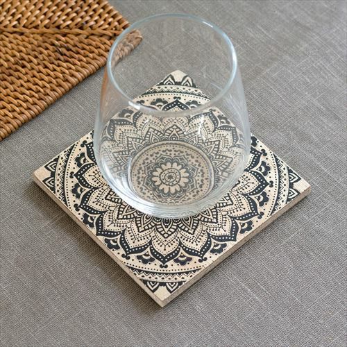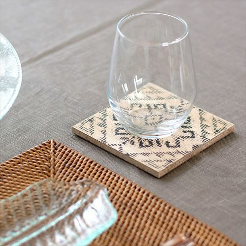 アジアンテイストなデザインを、アナログ調にプリントしたコースター。