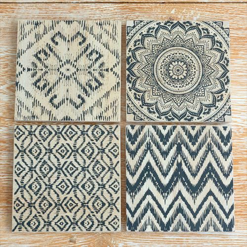 イカット柄や曼荼羅柄など、セットに含まれる4枚それぞれの柄が異なります。