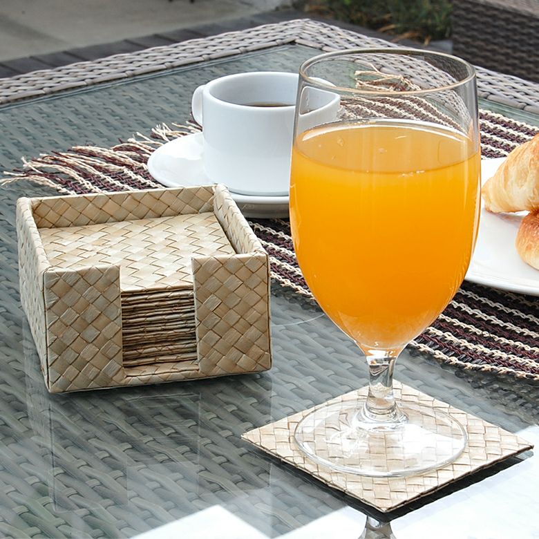 パンダンで編まれたスクエア型コースター 12枚セット