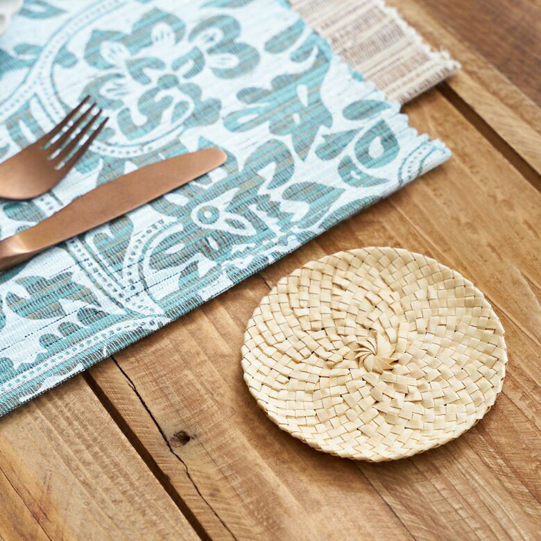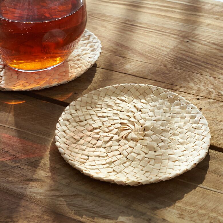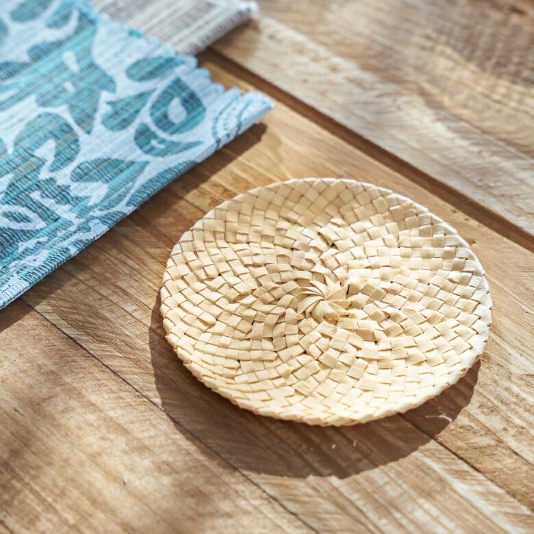 ヤシの葉で編まれたコースター
