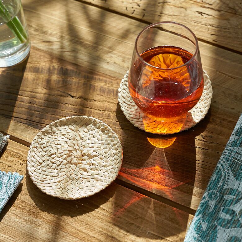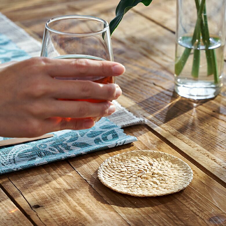 ナチュラルな色合いが可愛いヤシの葉のアジアンコースター。