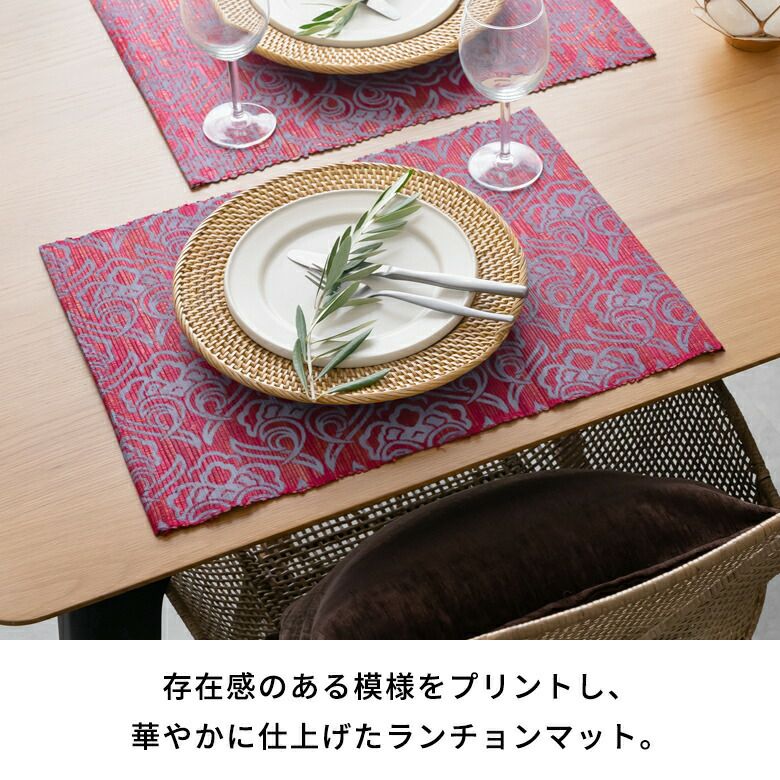 職人がひとつひとつ丁寧に編み込んだ、アジアン柄のランチョンマット。