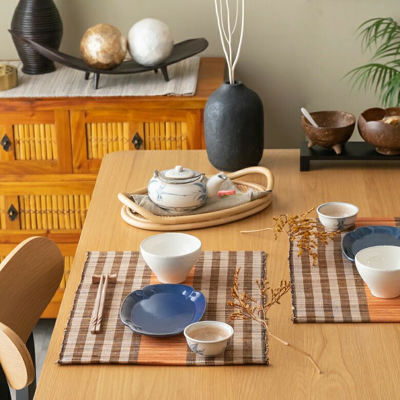 職人がひとつひとつ丁寧に編み込んだ、アジアン柄のランチョンマット。