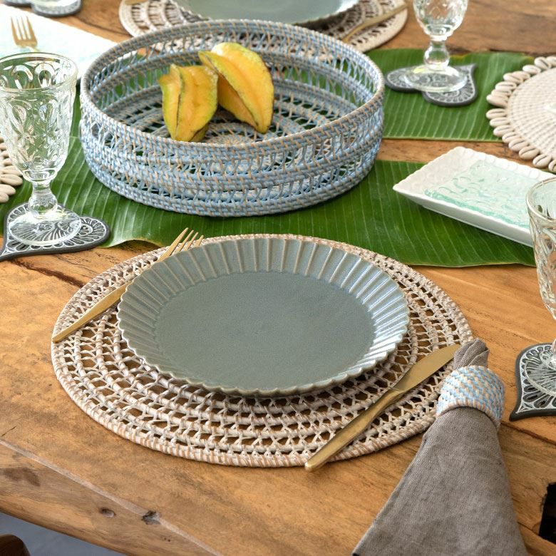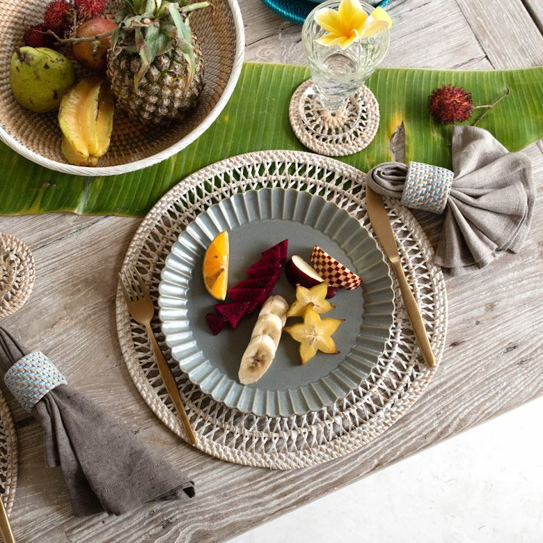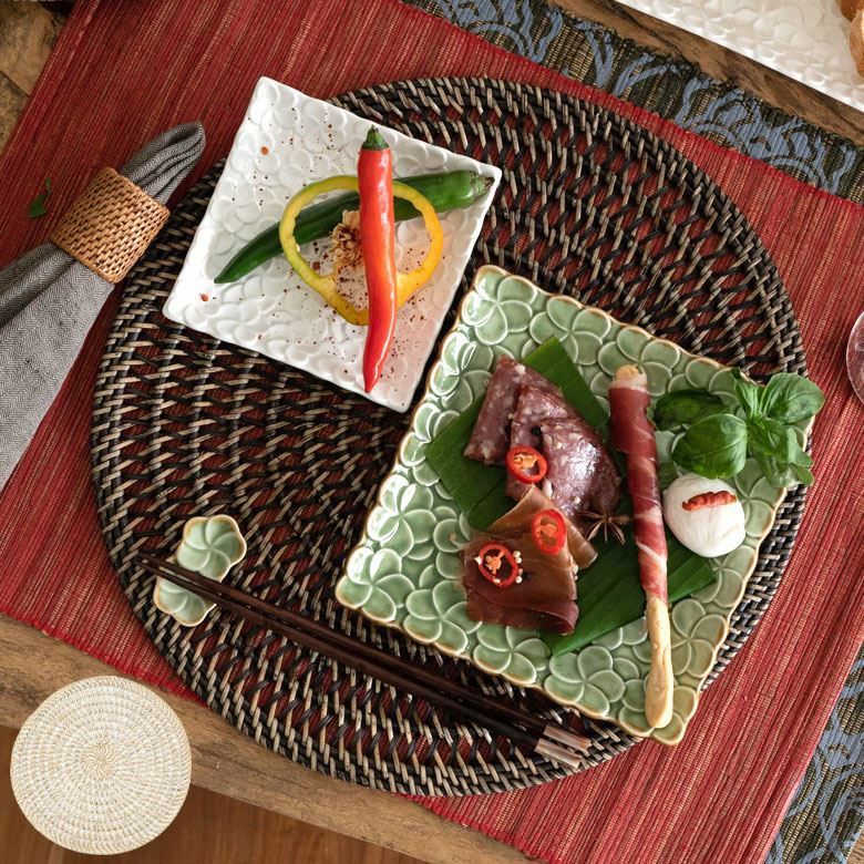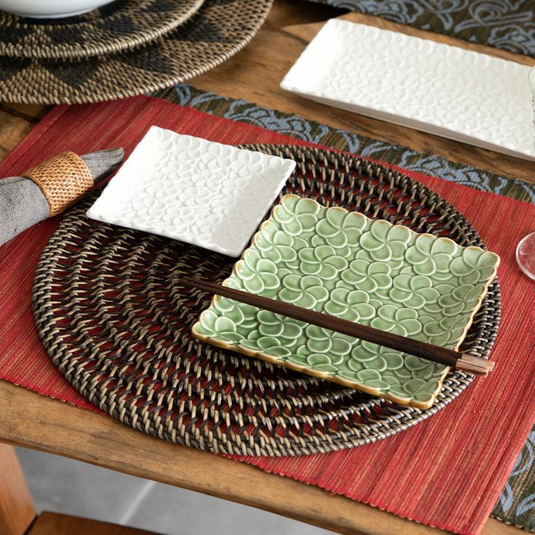 プルメリアデザインの食器と合わせたり、テーブルランナーと