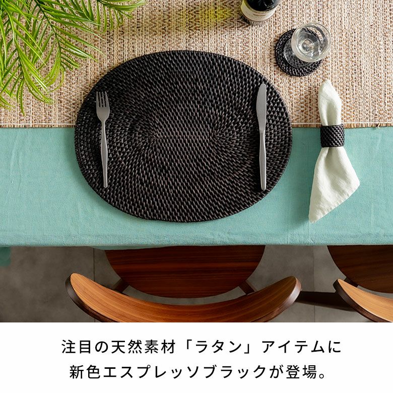 洗練されたテーブルコーディネートを作る、エスプレッソブラックカラーのラタンアイテム。