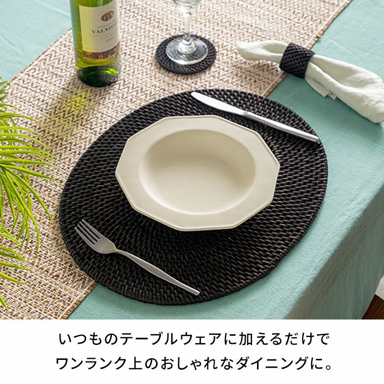 ラタンのランチョンマット [ラウンド/ エスプレッソブラック]