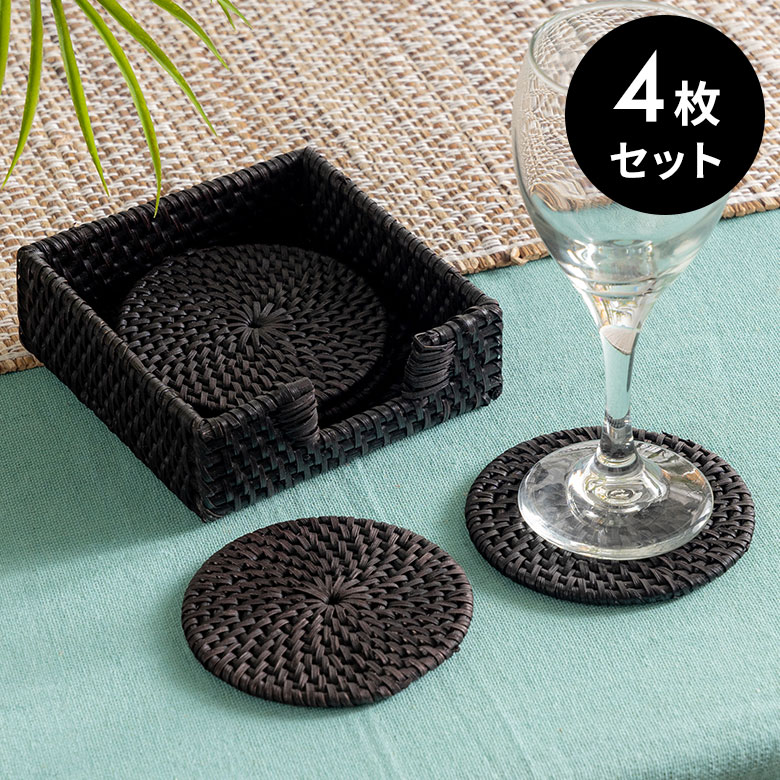 ラタンのコースター[4枚セット/エスプレッソブラック]