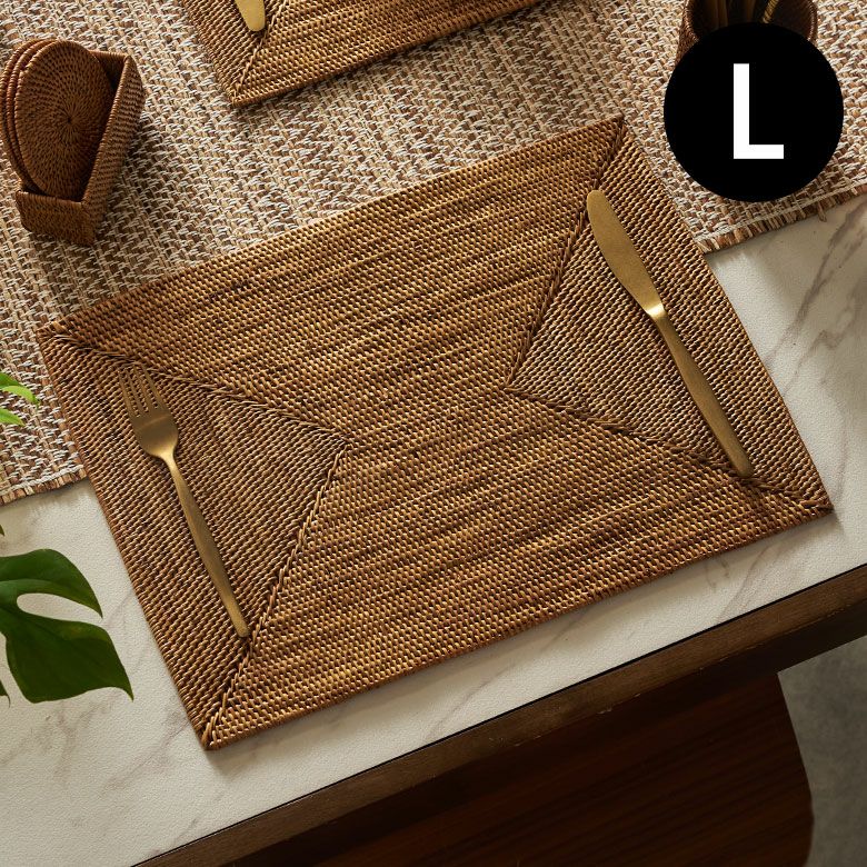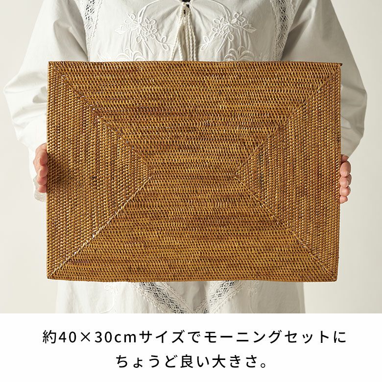 ナチュラルな素材感とシンプルなスクエア型。整然とした印象で、食器やカトラリーをすっきりと配置できるデザインです。Lサイズはモーニングセットにぴったり。