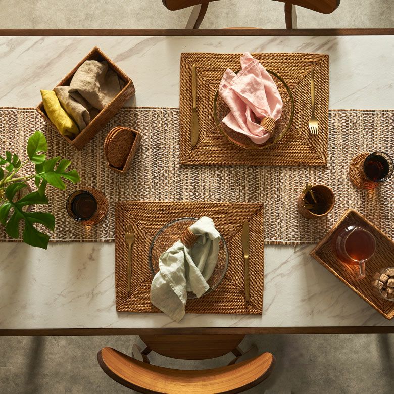 ランチョンマットとして、ナチュラルやアジアンな雰囲気の演出に
