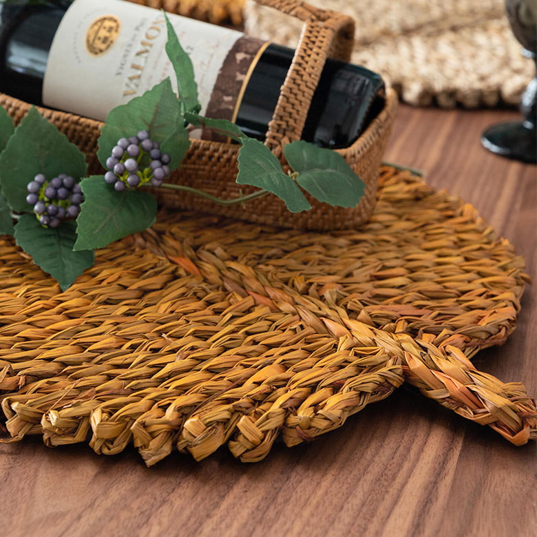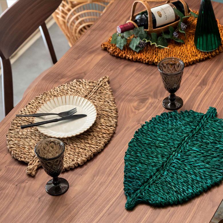 プレースマット 葉っぱ型 ハンドメイド マット 敷物 ランチョンマット プレイスマット シーグラス 天然素材 リーフ型 約 W 50cm D 33cm H 1cm [51282]【 ランチマット テーブルウェア キッチン雑貨 キッチン小物 ダイニング 食卓 テーブルコーディネート おしゃれ 北欧 リゾート ナチュラル アジアン 雑貨 】