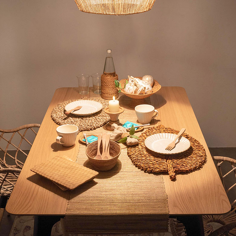 ウッドカトラリーなど、他の天然素材アイテムとの相性も抜群。