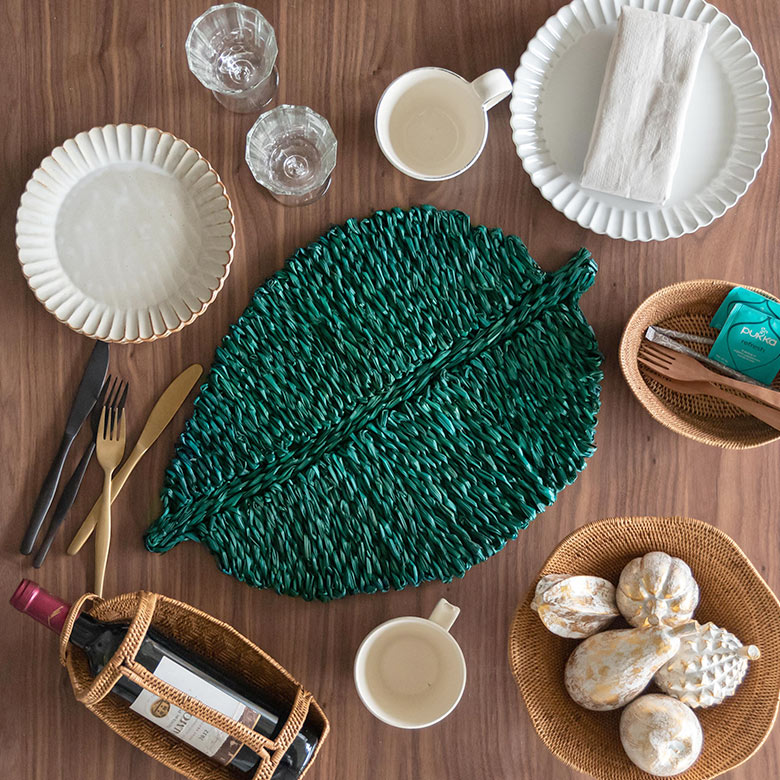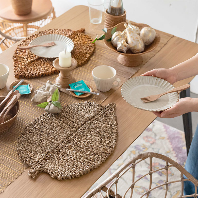 ユニークなリーフ型のデザインで、テーブルを華やかに演出。