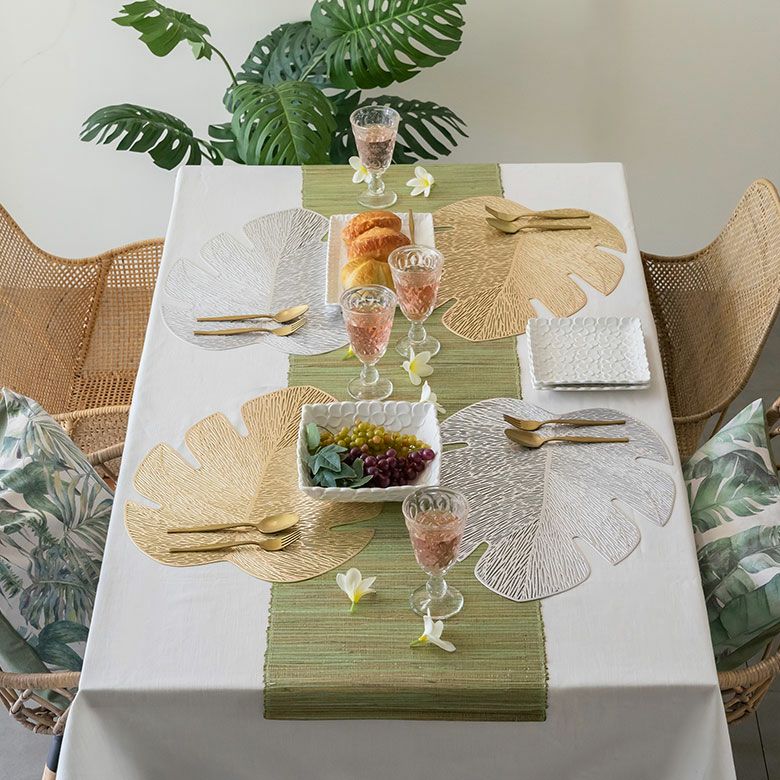南国リゾートなテーブルコーデにぴったりのモンステラリーフデザイン。