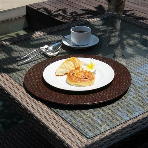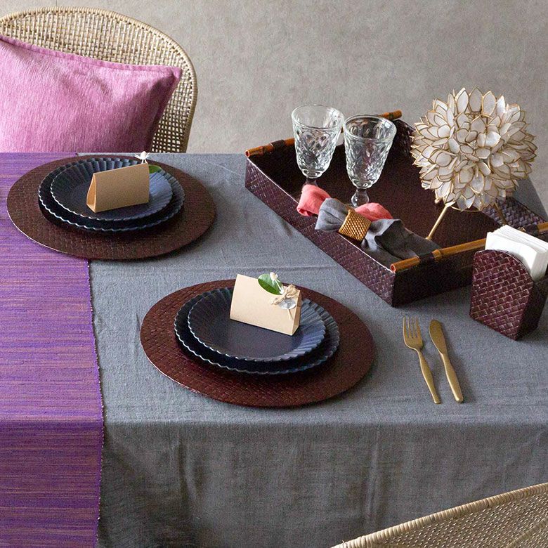 シンプルなお皿の下に敷くだけでアジアンな雰囲気を演出。