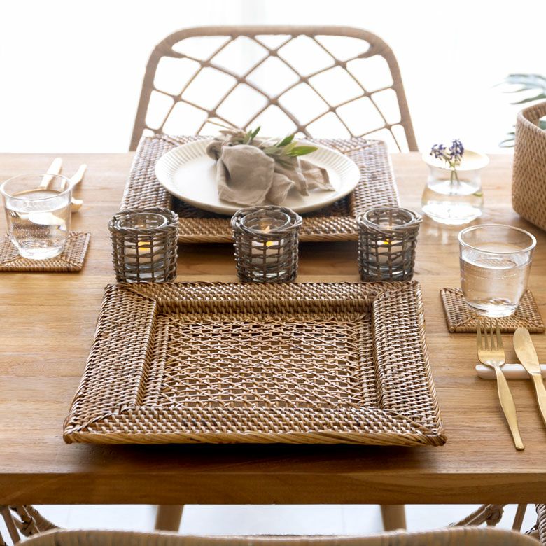 天然ラタンのプレートトレイ [スクエア]