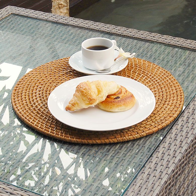 ナチュラルなラタンを職人の手作業で丁寧に編みあげたランチョンマット。