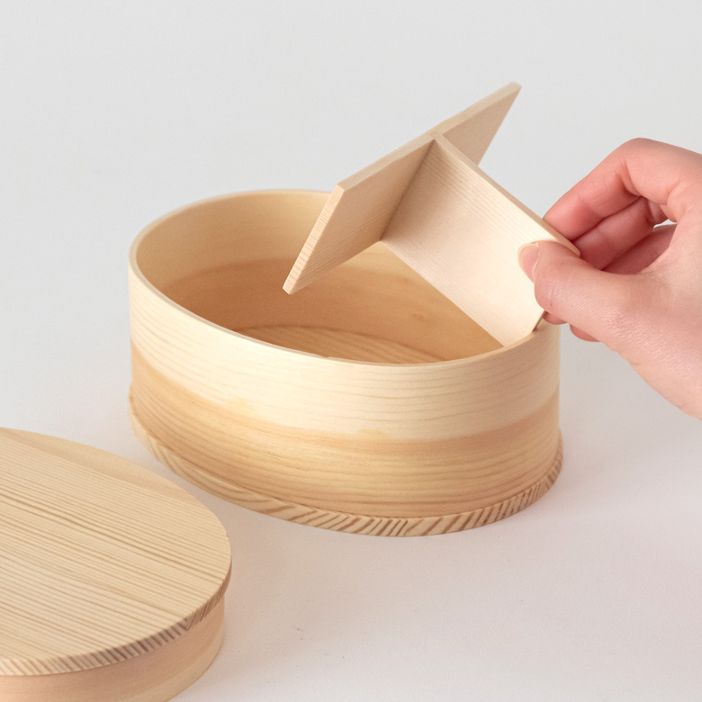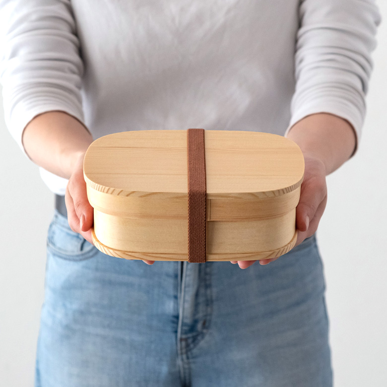 軽くてやさしい手触りも曲げわっぱの良いところ。