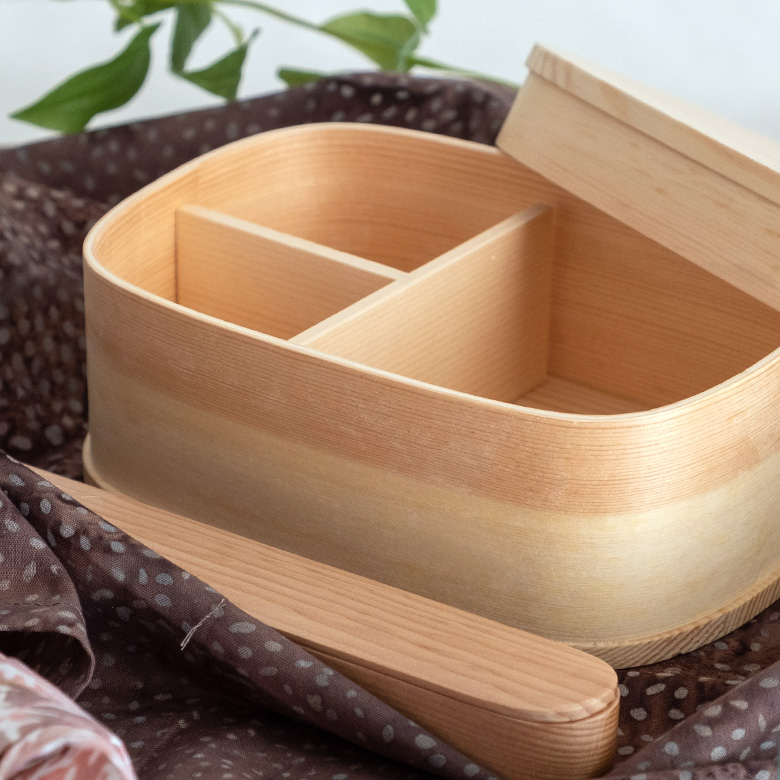通気性と保湿性の両方の特質を持つ木。おかずが傷みにくいのもGood.