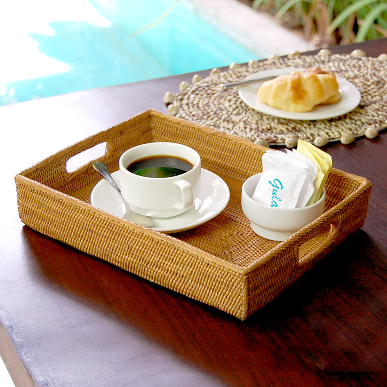 ロータスをモチーフにしたアジアンカービングトレイ |