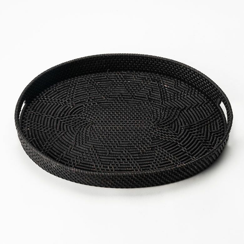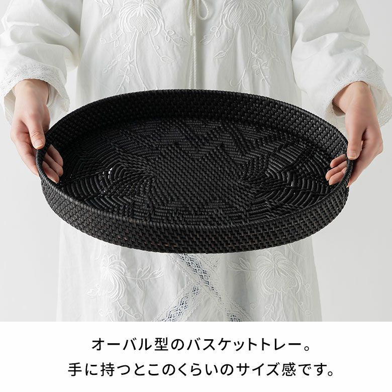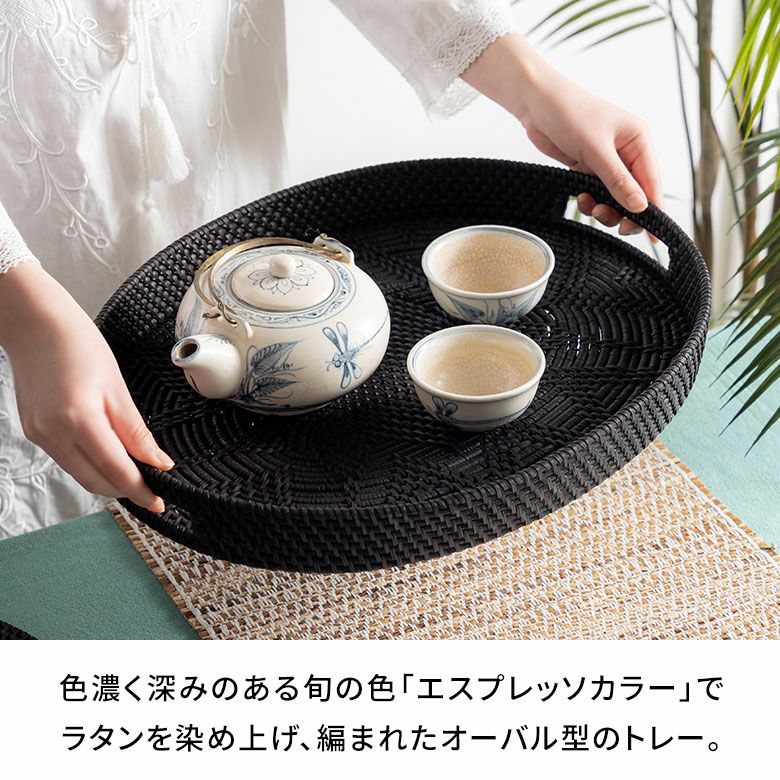 ラタンを染め上げ、編まれたオーバル型のトレー。