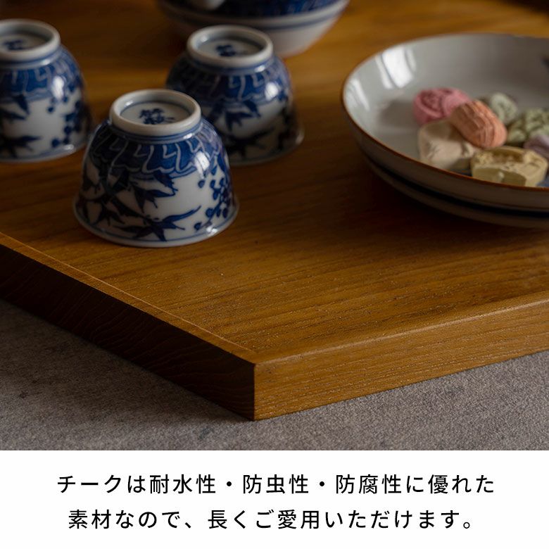 チークは、年月とともに艶を増す生きている木。ホテル・旅館のような上質さを、毎日のテーブルへ。実用品ながらも特別感があり、ギフトとしてもおすすめ。