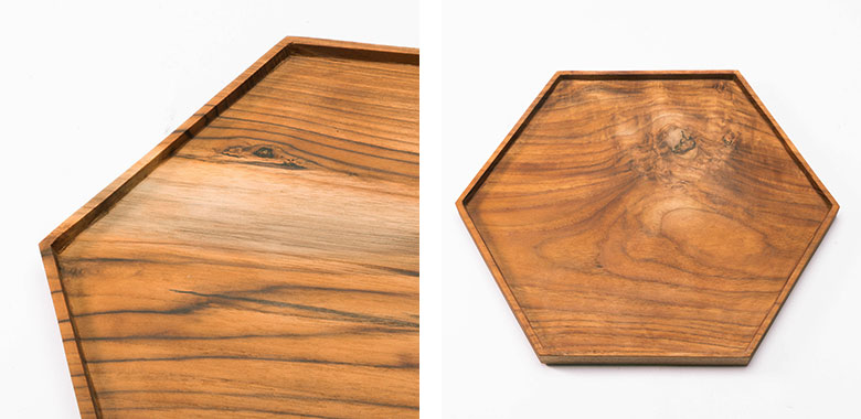 チーク無垢材 六角形トレイ