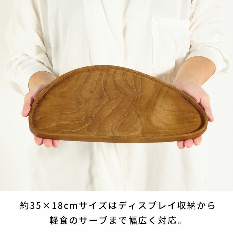 個性的なフォルムと自然素材の温もりを融合したミニマルな木製トレイ。