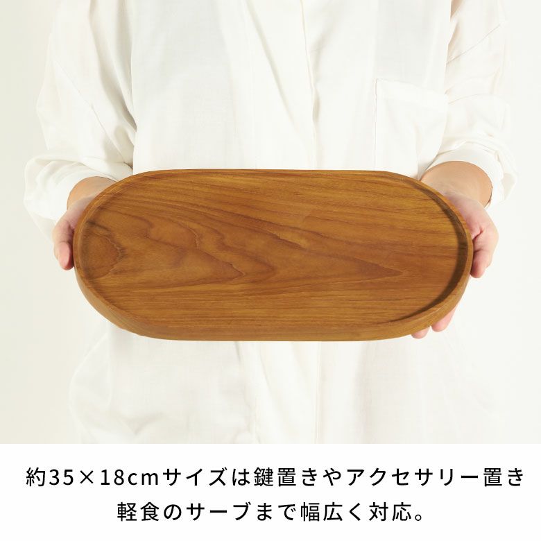 ベーシックでシンプルな楕円形はどんな空間にも馴染みます。約35×18cmは急須や湯呑、お茶菓子をさっと出すのにちょうど良いサイズ。