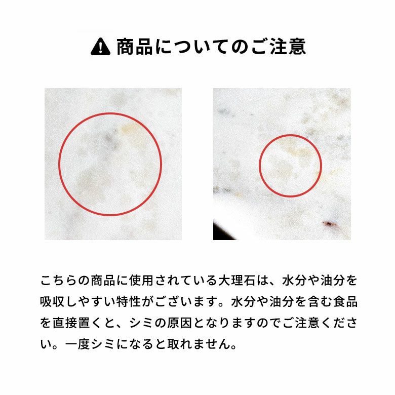 色の混ざりや模様など、石の表情が一つ一つ異なる天然の大理石を使用。