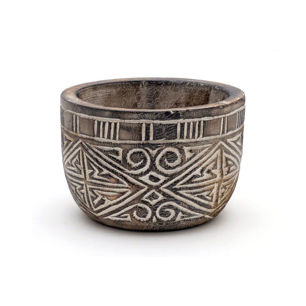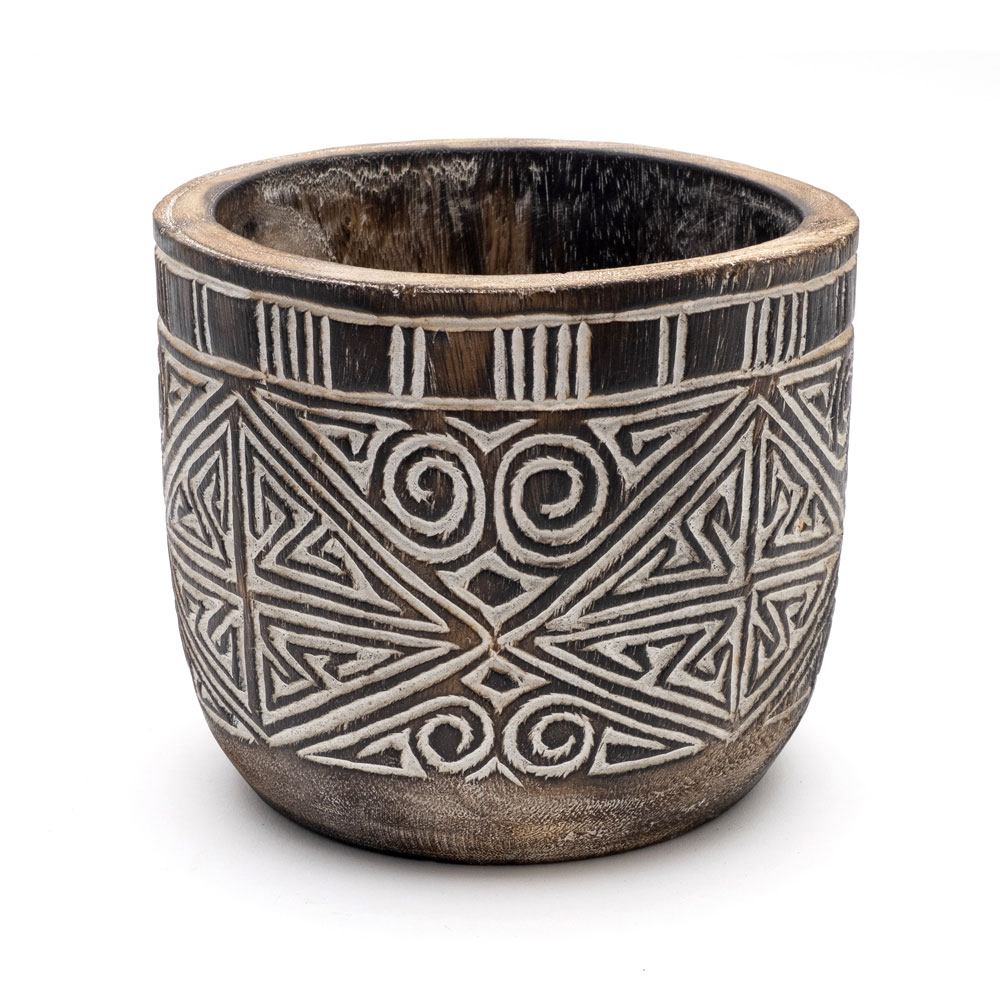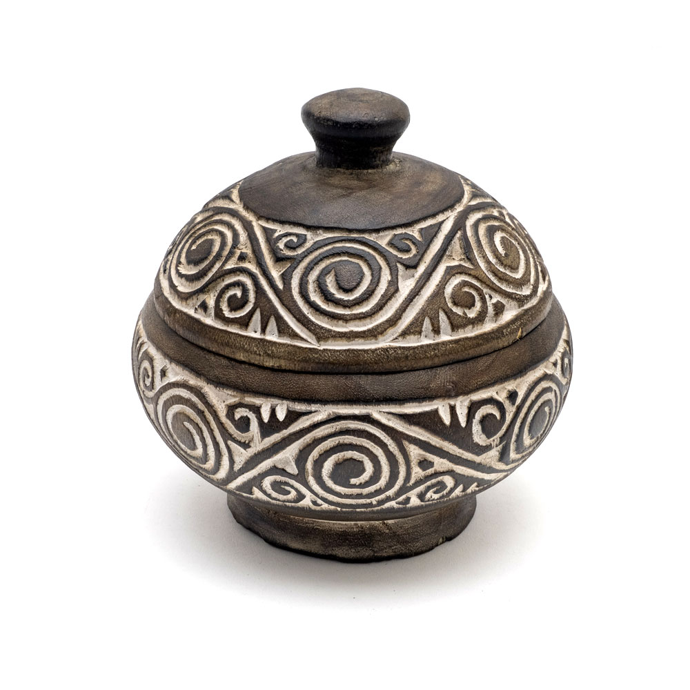 表面に施されたアジアンオーラ漂う彫刻は、インドネシア・スンバ島に伝わる伝統的な文様です。