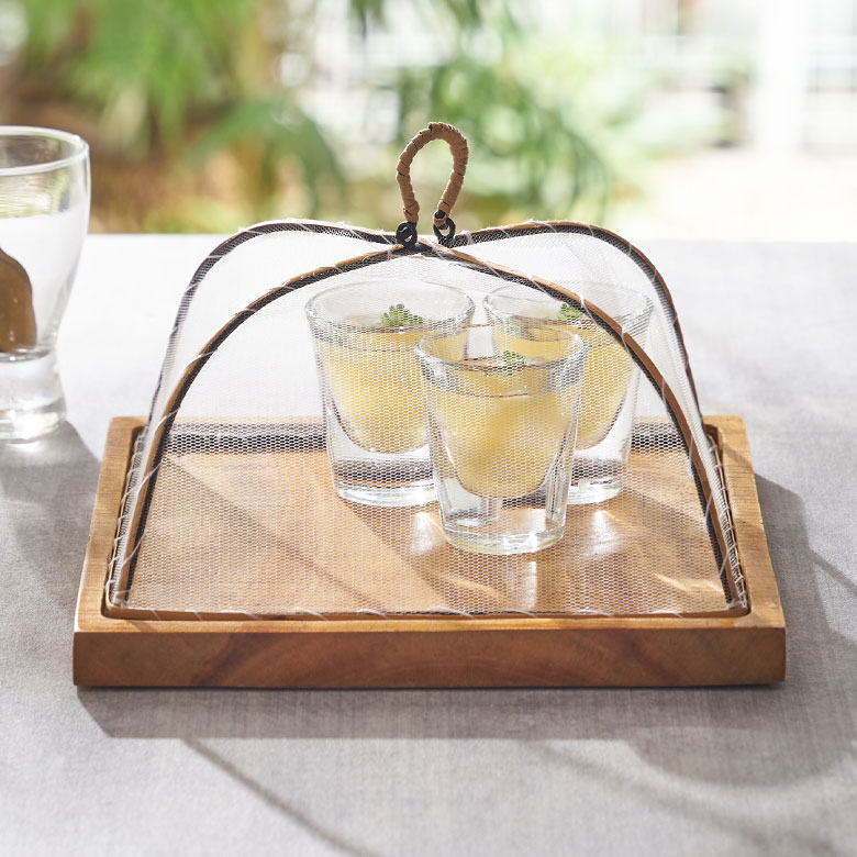 正方形のチークトレイに、涼し気なフードカバーを合わせました。