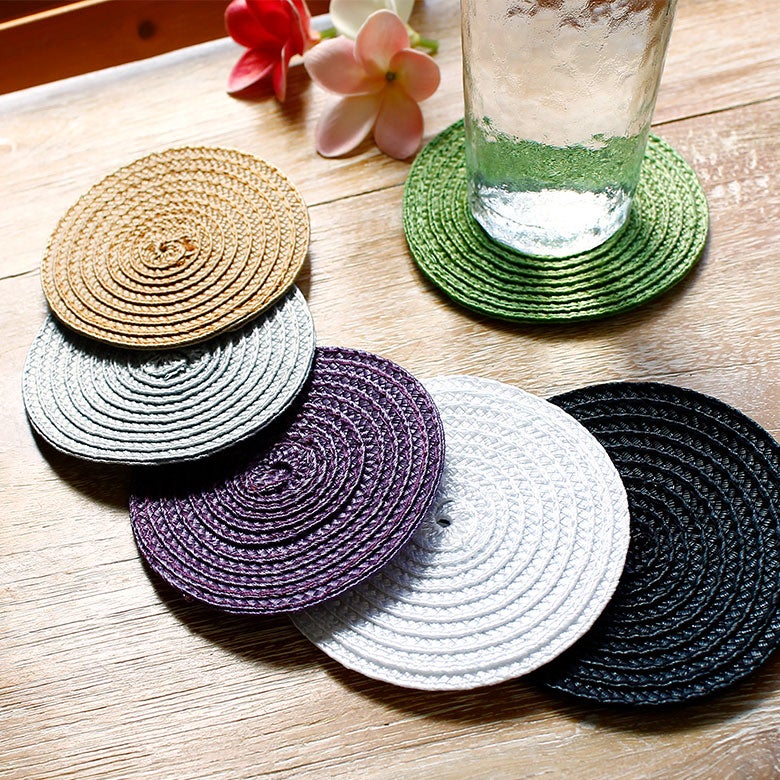 ▲リゾートスタイルのダイニングテーブルを演出する、アジアンコースター