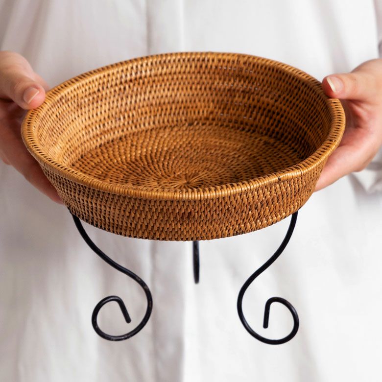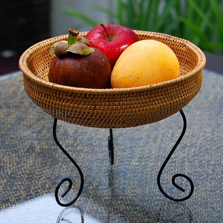 果物かごや小物入れにオススメなバリ島の人気アジアン雑貨 アイアンスタンド付きアタ製 コンポート 果物かご おしゃれ 果物カゴ かわいい トレー かごトレイ キッチン収納 くだものかご バスケット 小物入れトレイ アジア雑貨 アジアン雑貨 バリ島 アジアン 籠 エスニック 収納カゴ 収納かご ナチュラル バリ雑貨 インテリア [2123]