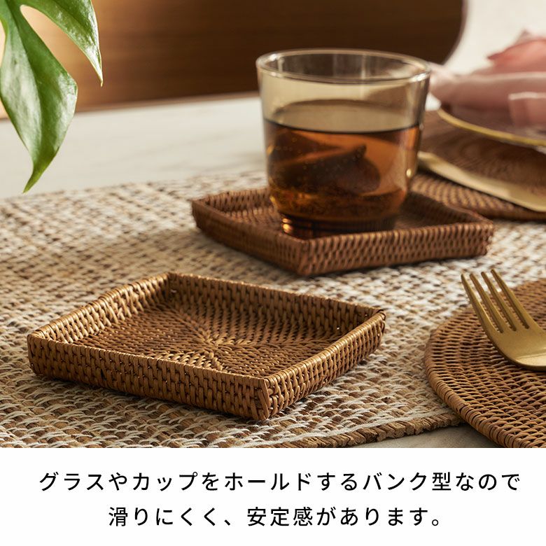 コースターやデザートのトレイにも使えるバリ島のアジアン雑貨 【メール便対応】アタ製バンク型コースター[スクエアタイプ][2519]【正方形 四角形コースター トレー モダン おしゃれ ナチュラル ソーサー バリ雑貨 アジアン雑貨 エスニック インテリア リゾート バリ島 アタ製品】