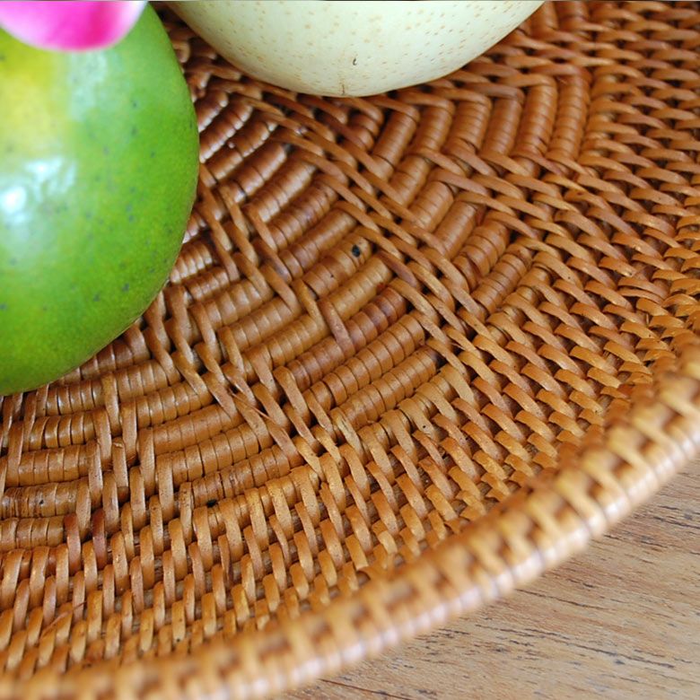 インテリア エスニック リゾート テーブルコーディネート 食卓 ランチョンマット ラタン製 ランチマット プレースマット プレイスマット テーブルウェア 径約35cm 高さ0.5cm [13828]【 キッチン雑貨 キッチン小物 ランチョン おしゃれ ダイニング 透かし編み アジアン雑貨 アジア雑貨 バリ島 】