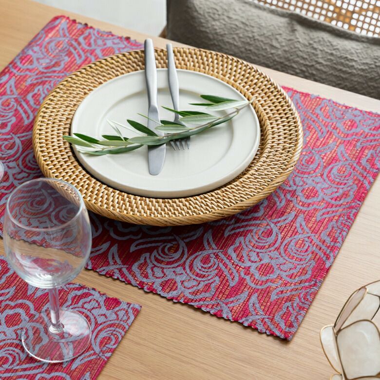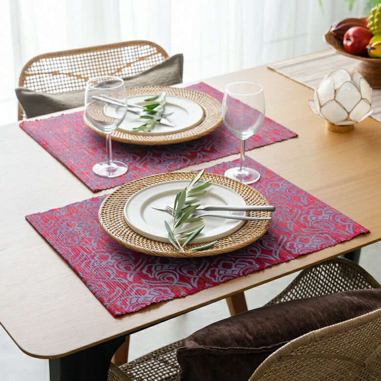 天然素材を使ったアジアンランチョンマット。いつもの食卓でレストランの雰囲気を味わえるバリ島の人気アジアン雑貨 ウォーターヒヤシンスのアジアンランチョンマット レッド×グレー キッチンマット ティーマット テーブルウェア テーブルマット プレースマット プレイスマット モダン ランチマット アジアン雑貨 アジア雑貨 四角 食卓 リゾート メール便対応 [10811]