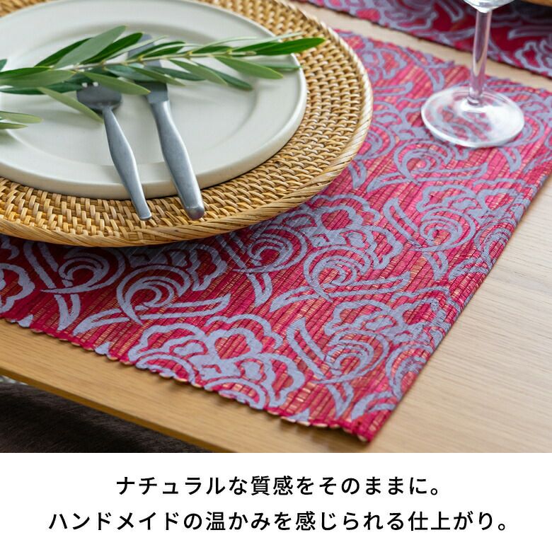 テーブルマット カバー 長方形 生地 染物 【メール便対応】ランチョンマット バティック 布 さらさ 更紗 インドネシア バリ島 約33×46 [13906]【 ハンドメイド テーブルクロス ピンク ブルー グレー 手染め ろうけつ染め スタンプ コットン 綿 マルチクロス タペストリー リゾート アジアン雑貨 エスニック 】