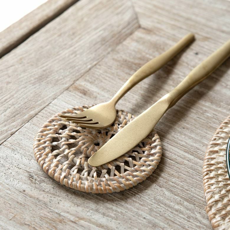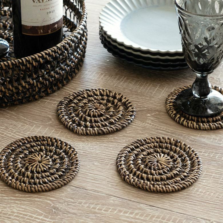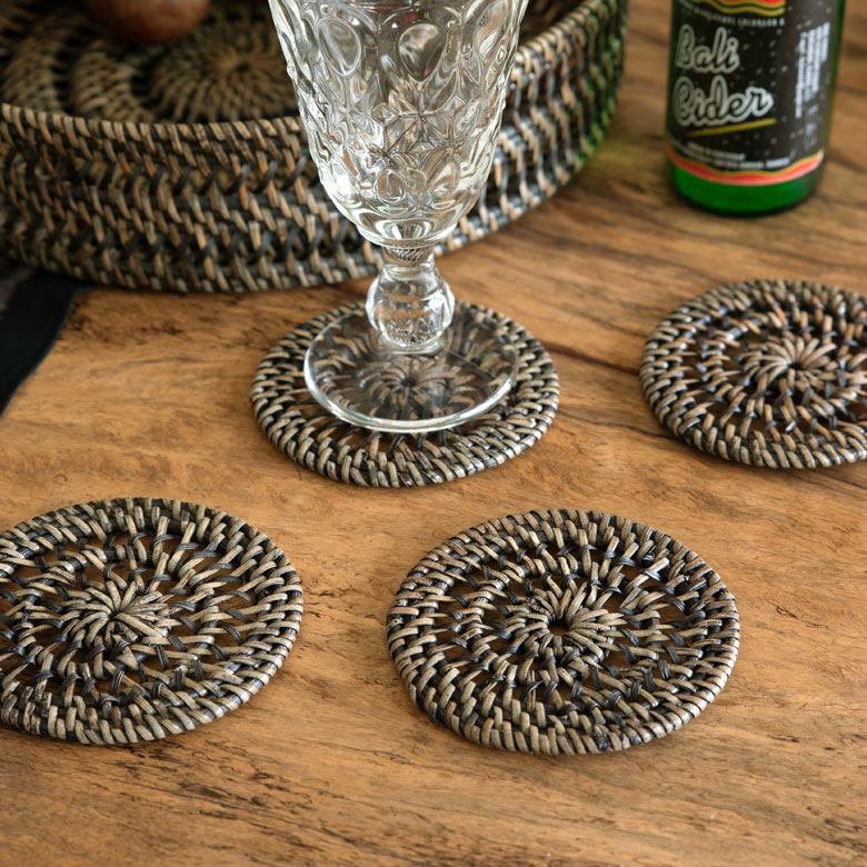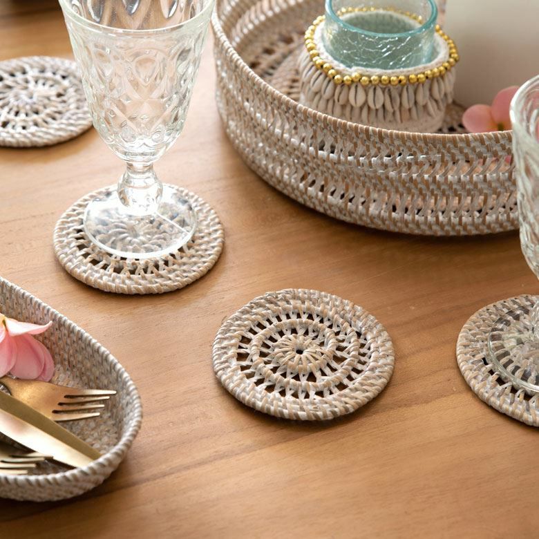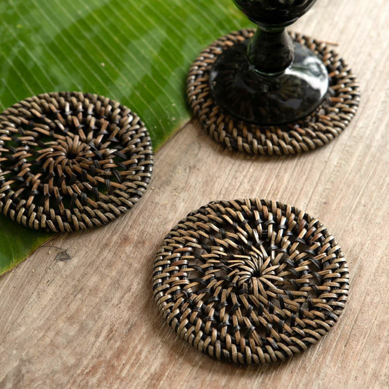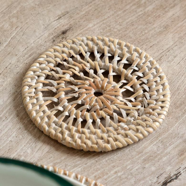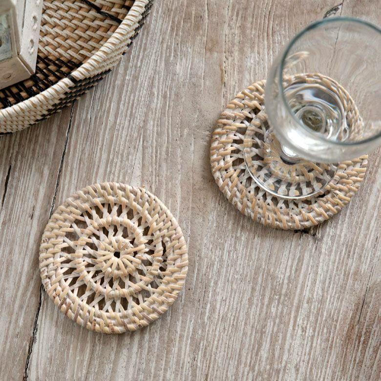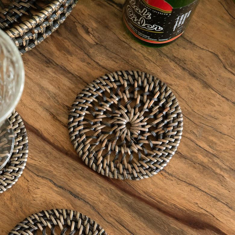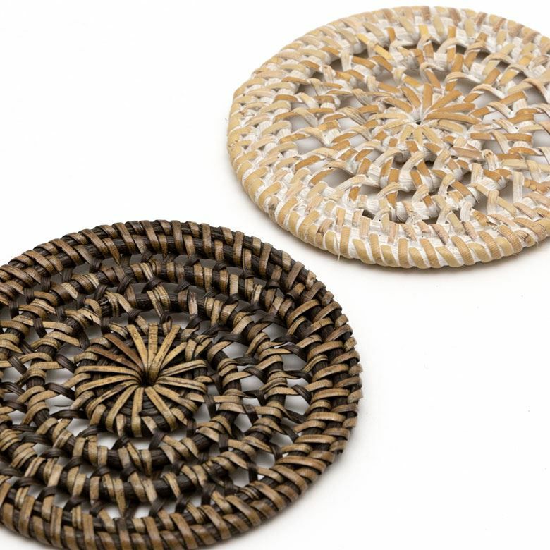インテリア エスニック リゾート テーブルコーディネート 食卓 コースター ラタン製 プレースマット プレイスマット テーブルウェア 径約10.5cm 高さ0.5cm [13829]【 キッチン雑貨 キッチン小物 ランチョン おしゃれ ダイニング 透かし編み アジアン雑貨 アジア雑貨 バリ島 】